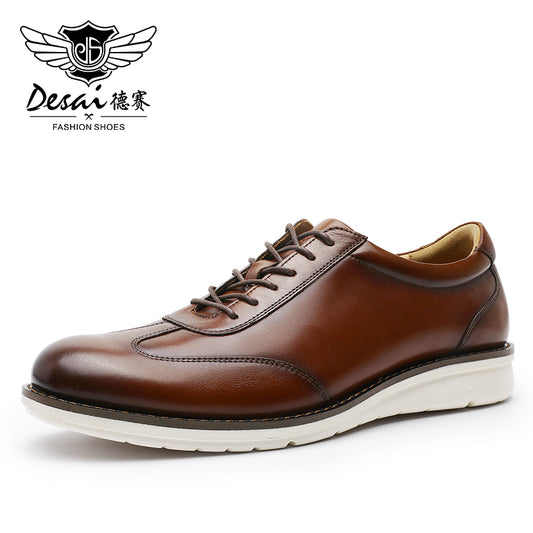 Desai New Men's Leisure Leather sneakers Full grain Leather shoes Soft Sole Anti-slip and wear-resistant footwear OS6601
